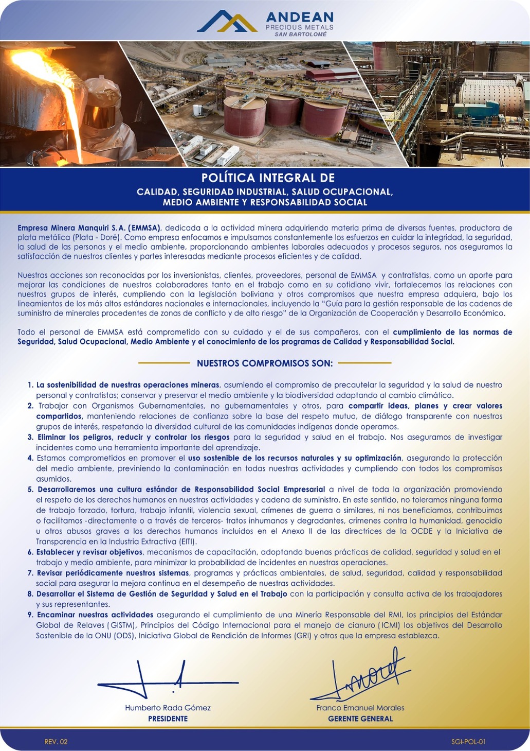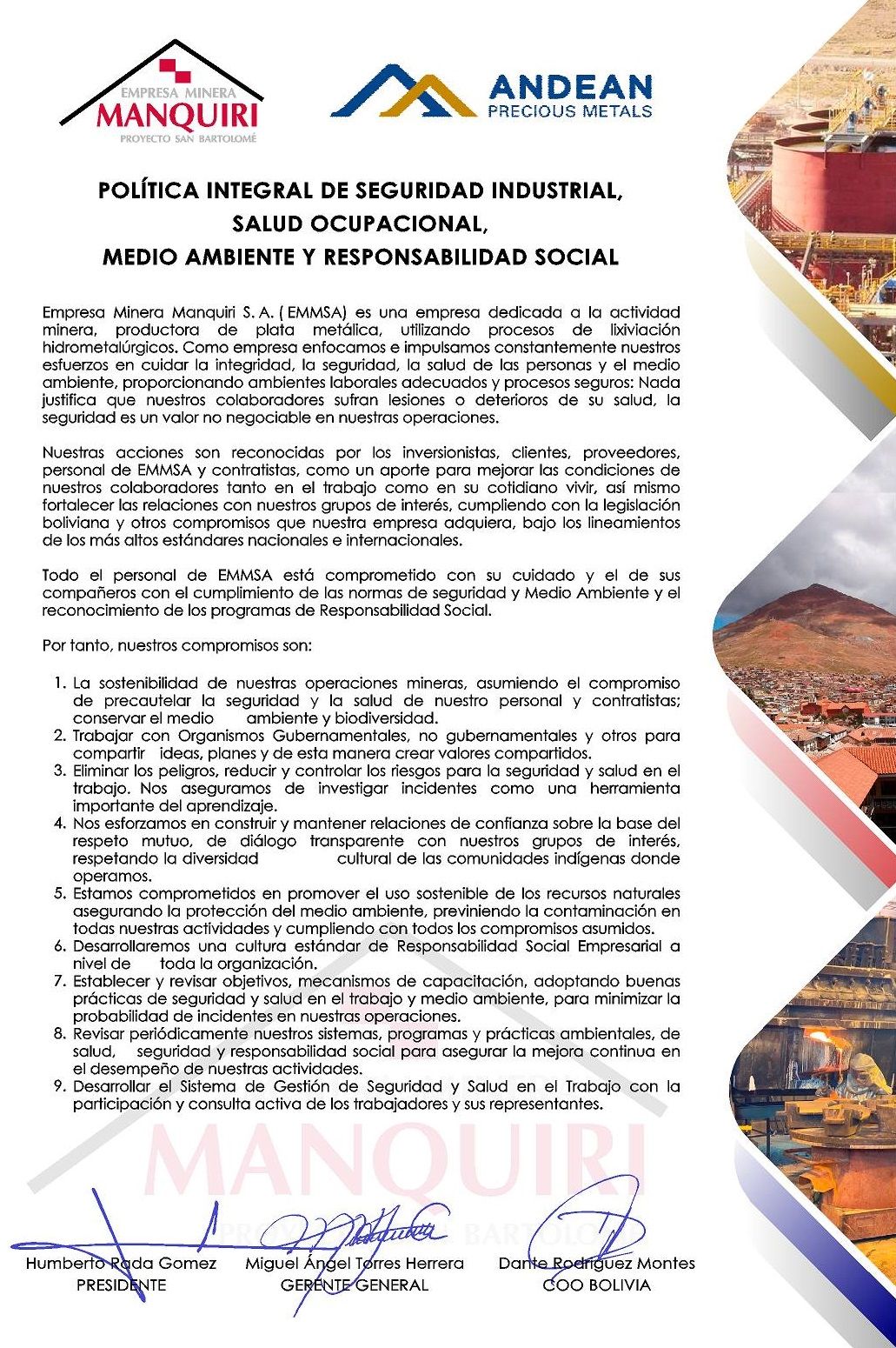 POLÍTICA INTEGRAL MINERA MANQUIRI